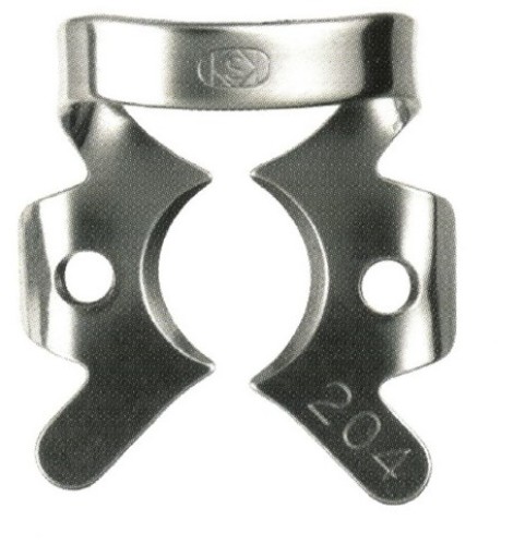 Кламп для Раббердама 204 (Япония) сделан из закаленной стали, поэтому обладает повышенной упругостью и прочностью. Он имеет ассиметричные щечки небольшого размера, которые отлично фиксируются на зубе.